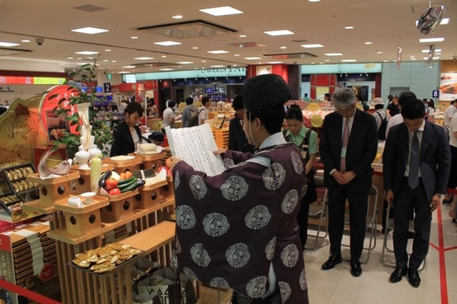 この度、夏の帰省シーズンに合わせて、新大阪駅をご利用いただく方々の旅の安全と商売繁盛、また、「アンリ・シャルパンティエ」の商品をご愛顧いただいているお客様に感謝の気持ちを込めて、西宮神社神職さまによるご祈祷を行いました。