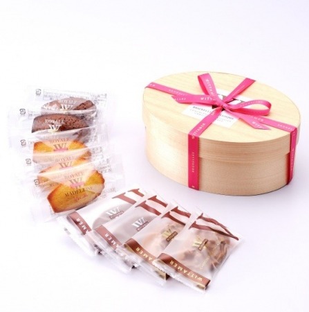 【内容】マカダミア・ショコラ×4 枚(ミルク/ダーク各2 枚)、ロイヤル・マドレーヌ(バニラ)×3 個、ロイ