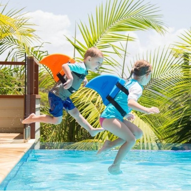 ママが手を持ってあげてリラックスさせながらの練習も良し、泳げる子達と一緒に学ぶも良し!Kids達のテンションもカラフル背びれでMAX間違いなし!全4色取り扱いです。