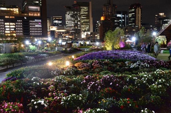うめきたガーデンは8月31日までナイター営業中。午後9時まで花のライトアップを行っており、高層ビル群のダイナミックな夜景を背景に、今しか見られない花と光の共演をご堪能いただけます。ナイター期間中、毎日午後8時から開催の花火ショー「うめきたファイアーリュージョン」も大好評です。