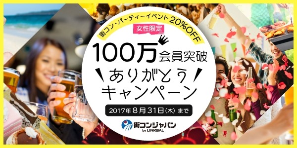 株式会社リンクバル(本社:東京都中央区、代表取締役社長:吉弘和正、証券コード:6046、以下「リンクバル」)が運営する、街コン公式サイト「街コンジャパン( https://machicon.jp/ )」の登録会員数が、2017年7月20日(木)に100万人を突破いたしました。これを記念し、「100万会員突破 ありがとうキャンペーン(以下「本キャンペーン」)」を2017年8月14日(月)~31日(木)まで実施いたします。