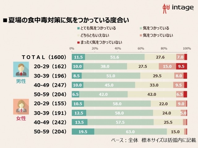「夏場の食中毒対策」に63.1%が「気をつかっている」と回答。性年代で意識に差