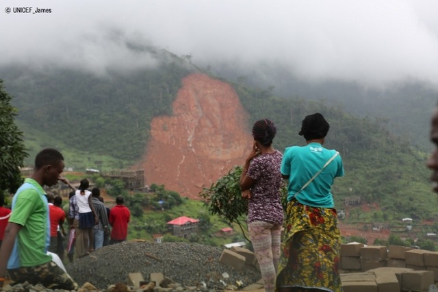 シエラレオネの首都フリータウンは、13日夜から14日朝にかけて豪雨と土砂災害に襲われました。政府が発表した死者数は、15日(火)時点で297人にのぼり、その3分の1に当たる109人が子どもでした。犠牲者の数は、さらに増えると見込まれています。ユニセフ(国連児童基金)は、被災現場にて、被災した人々への緊急支援を開始しています。いち早く被災地に入ったシエラレオネ事務所広報官ジョン・ジェームスは、現場の状況を下記の通り報告しています。
