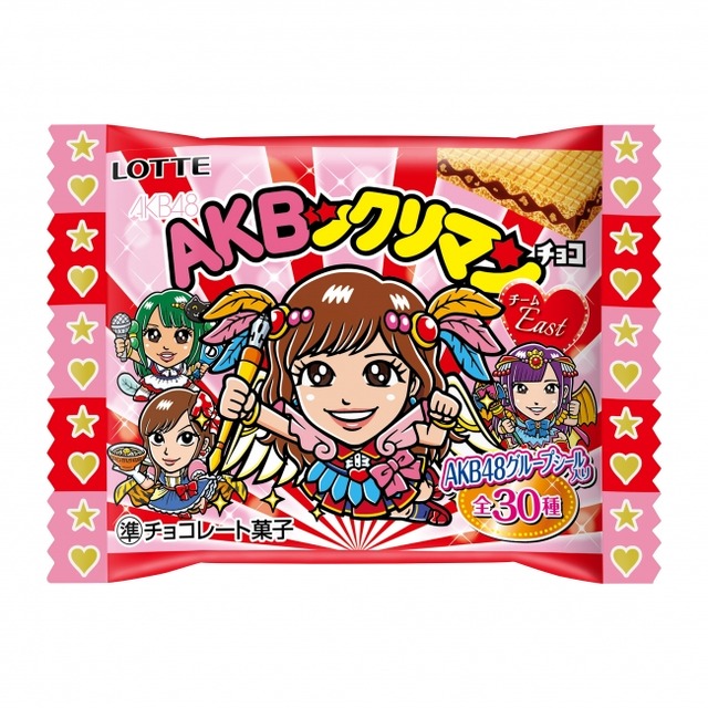 1. 「AKBックリマンチョコ」は、<チームEAST><チームWEST>の2種類があります。