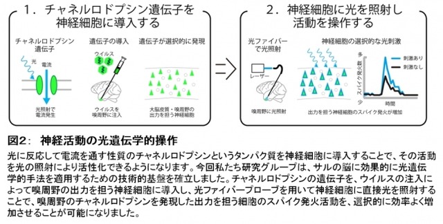 ヒトの認知機能を細胞レベルの神経回路に基づいて因果的に調べるために、霊長類に光遺伝学的手法を適用する技術的基盤を確立した。