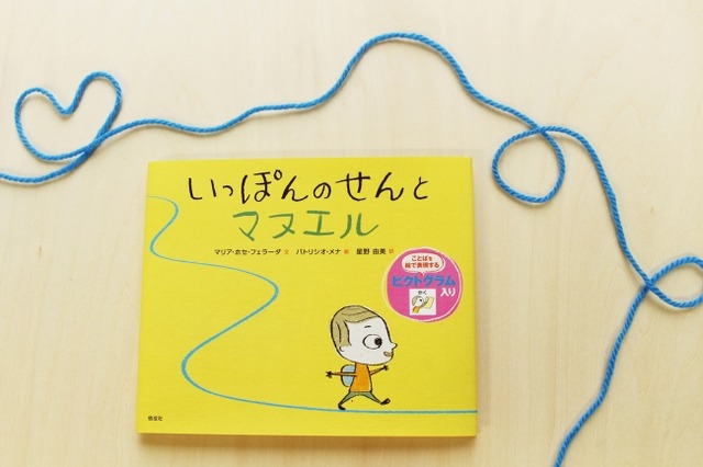 では、なぜ線なのでしょう? この本は著者のマリアさんが線が好きな自閉症の男の子・マヌエルくんと知り合ったことによって生まれました。マリアさんはあとがきで「マヌエルは線がだいすきです。なにかをみるときは、いつもはじめに線をみつけます。ノート、空、地平線のなかに、いつも線をさがしています。こうして自分の世界をかたちづくるのです」と書いています。マリアさんは線が好きだというマヌエルくんのために絵本をつくろうと考えました。そして自閉症の子など読者対象となる子に関わる人々から、さまざまな意見をとりいれ試行錯誤を繰り返しながら、画家のパトリシオさんとともにこのシンプルで魅力的な絵本を完成させたのです。