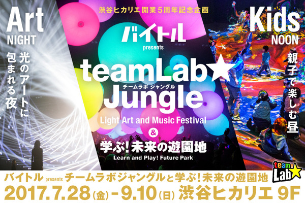 セルリアンタワー東急ホテル(東京都渋谷区、総支配人:宮島芳明)では、夏休み宿泊プラン「バイトル presents チームラボジャングルと学ぶ!未来の遊園地」を、9月10日(日)のご宿泊日までご用意しております。1.ファミリー向けプランの「チームラボジャングル“Kids Noon(キッズヌーン)”」宿泊プランと2.カップルなど大人向け対象の「チームラボジャングル“Art Night(アートナイト)”の2つのプランを展開。料金は1.大人1泊朝食付1名さま16,000円~(お子さま1名さま9,600円~)2.大人1泊朝食付1名さま25,000円~販売いたします。