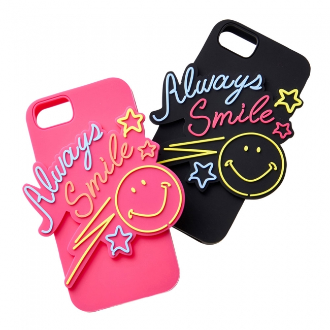 ネオンサイン風のスマイルマークが個性的。やわらかくて手になじむラバー素材です。