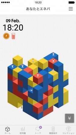 ◇電気・ガス・お湯を黄・青・赤の3色のキューブで表現。使った分のキューブが日々積み上がります。