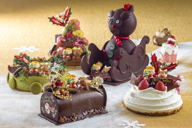 「クリスマスストーリー」をテーマに、カラフルなプチシュークリームをツリーに見立てて積み上げた「ビニョラータ」や、和の味わいの「クリスマスリース」のほか、チョコレートで作った「ブラックスノーマン」など、パティシエの遊び心あふれる全5種類が揃いました 。