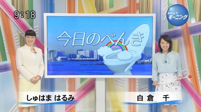 CM明けの「おはようモーニング」のスタジオ。どこかうさん臭い男性キャスターが紹介する次のコーナーは「今日のべんき」のコーナー。2人の女性キャスターが、ある家庭のトイレのニオイの移り変わりを、液晶画面に映る「べんき図」を使って天気予報風にリポートしていきます。強烈なニオイへの注意を促す「尿臭警報」。広範囲に飛び散る尿ハネの分布を伝える「尿ハネ配置図」。雨雲のように発生し広がる尿臭の動きを伝える「尿臭レーダー」など、天気予報のフォーマットを使ってトイレのニオイが発生する過程をわかりやすく解説。そして、「トイレクイックル ニオイ予防プラス」なら、朝おそうじをするだけで、防臭コートが尿ハネの嫌なニオイを防いでくれる、ということを伝えます。トイレのニオイ発生と予防を「天気予報」に見立てて伝えるという、真面目とシュールが入り混じったユニークな内容は、一度見るとまた見たくなってしまう不思議な魅力を持っています。辛口なコメントを挟んでくる女性キャスターや、最後に男性キャスターが紹介する謎のコーナーにもご注目ください。
