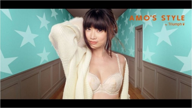 着用している商品は「アモスタイル バイ トリンプ」の中で不動の人気No.1シリーズである『夢みるブラ(R) Luxury(ラグジュアリー)』と、洋服の着こなしまでを計算して作られたランジェリー『Dress 026シリーズ』。