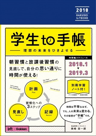 <特長>『理想の未来を引きよせる』をテーマに、「計画・記録・見直し」を習慣化することで、計画性や実行力を身につけることができる手帳。バーチカル式週間スケジュールの9~16時を短縮化し、朝と放課後の時間帯を広くしたフォーマットで、遊びや勉強の予定をしっかり立てることで、授業以外の時間をより有効に使える仕様になっている。