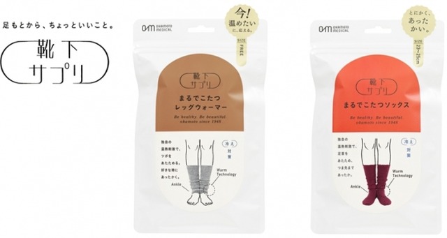レッグウェア製造卸販売・岡本株式会社(本社:大阪市西区・本店:奈良県広陵町/代表取締役社長:岡本哲治)は、医療機器ブランド「OKAMOTO MEDICAL(オカモト メディカル)」より発売されている「靴下サプリ(http://www.okamotogroup.com/supplement/)」シリーズの「まるでこたつソックス」からワインレッドの新色と、新商品「まるでこたつレッグウォーマー」を2017年9月より新発売いたします。
