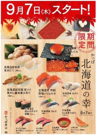 (せん)極(ごく)いくら』や『北海道紋別産 生ほたて』など北海道産のメニューを取り揃えた「かっぱ 北海道の幸」フェアを2017年9月7日(木)から開催いたします。