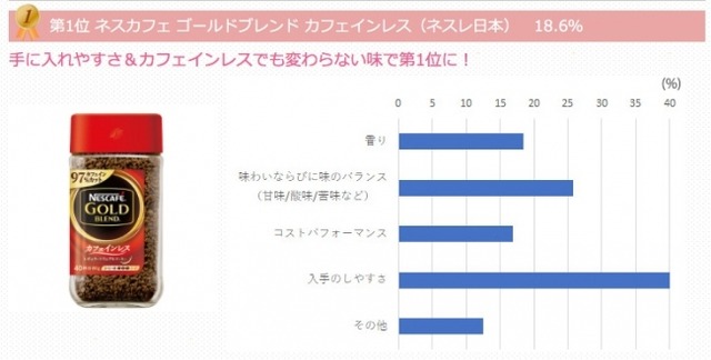 ■ネスカフェの「ネスカフェ ゴールドブレンド カフェインレス」が1位を獲得