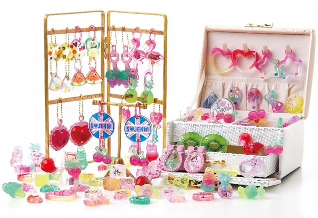 『ぷにジェル3D カラフルポップDX』には、人気アパレルブランド「JENNI」公式の[SS2] 、特別なデコシールを同梱しています。「JENNI」のロゴやカワイイデザインのデコシールで「JENNI」のデザイナーになった気分で、スタイリッシュなジュエリーアーティスト体験をお楽しみいただけます。また、自分で作った「JENNI」のアクセサリーを身に着けて楽しむこともできます。