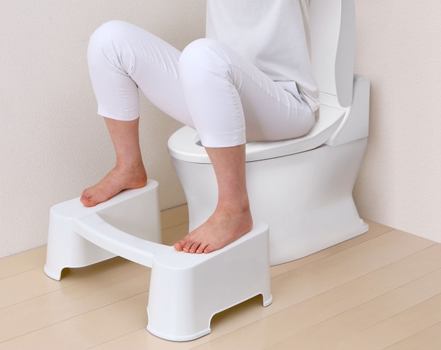 和式トイレのように、前傾姿勢を保つことで腸や肛門に負担がかかりにくい姿勢を保つことができます。恥骨直腸筋が緩まることで、直腸の位置が肛門に対して直線上になります。前傾姿勢になることで、腹部に力を入れることなく、足からの腹圧でお通じをサポートします。