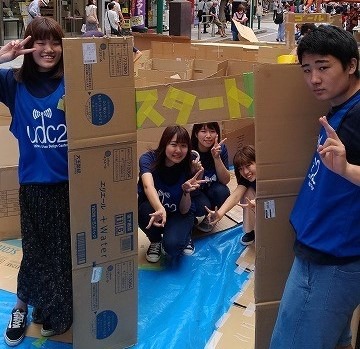 麗澤大学の学生達は、どうしたら子どもが火災時に煙を吸い込まないよう、頭を低くした体制で逃げられるかを考え、ダンボールで「防災迷路」を作成することを提案。当日には実際に迷路を制作してイベントに挑みました。この日、イベントに足を運んだ小学生以下の子ども達は途切れることなくこの迷路を体験していました。学生は子ども達が実際に防災について楽しみながら学べる環境を提供できたことに手ごたえを感じていたようです。担当教員の内尾講師は「子ども達にとっても大切な学びの場となったと共に、学生にとっても、実際に体験する子ども達一人ひとりに合うように臨機応変に対応するなど、普段の教室では中々、経験できない貴重な学びの場になった」と評価しています。