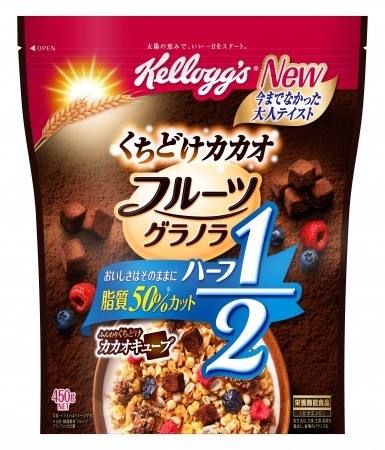 シリアル食品の世界シェアトップブランド「ケロッグ」を日本国内で展開する日本ケロッグ合同会社(本社:東京都港区、代表職務執行者社長:井上ゆかり)は、ご好評をいただいている『ケロッグ フルーツグラノラ』シリーズより、今までなかった大人テイストの「フルーツグラノラ ハーフ くちどけカカオ」を、9月中旬より全国のスーパー、ドラッグストア、ホームセンター等にて秋冬限定で新発売いたします。(一部取り扱いのない店舗がございます。)