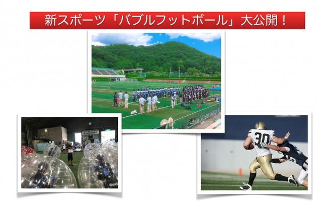 関西学生アメリカンフットボール連盟と提携し開発された「バブルフットボール」は、バブルボールと、アメリカンフットボール(以下:アメフト)をかけ合わせた、これまでにない新感覚スポーツです。