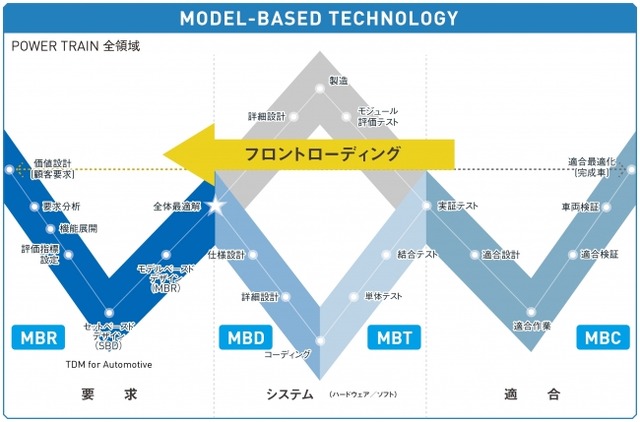 AZAPAは、国内自動車メーカーおよびサプライヤーに向けて、モデルベーステクノロジーを基盤とするフロントローディング化を行う独自プロセスを提唱し、自動車の機能システムごとの性能(局所最適解)のインテグレーションと自動車全体の性能(全体最適化)の可視化と設計を行う仕組みをソリューションとして提供しています。