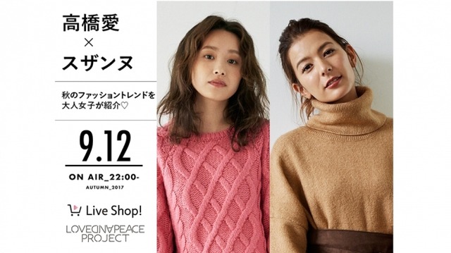 第一回目の配信は2017年9月12日(火)22時から、ラブ&ピースプロジェクトで一緒にデザインした高橋愛さんやスザンヌさんが出演する「オトナ女子のススメ from Love & Peace」を配信し、コラボアイテムに込められた想いや着こなしのポイントなどをお伝えします。