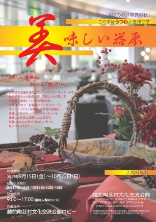 越前焼の食器を使用した、テーブルコーディネートで越前焼をもっと身近に感じて欲しいとの思いで、毎年秋に開催しています。