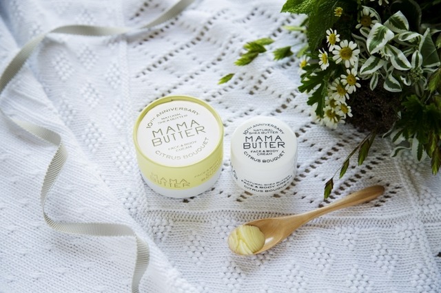 ママバターの誕生は今から10年前。天然由来保湿成分・シアバター100%の”フェイス&ボディクリーム”たったひとつのアイテムからでした。赤ちゃんから家族みんなで使える安心・安全な成分と、使い続けられる価格にこだわり、アイテムが増えた今も多くの方に愛されています。ブランド誕生10周年を記念して、ママバターの原点フェイス&ボディクリームに、柑橘系をベースにしたシトラスブーケの香りと、10周年限定パッケージで華やかさを添えました。