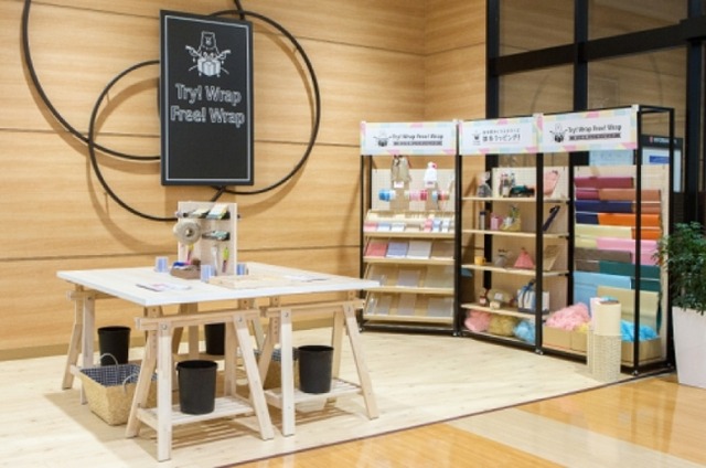 リボンや包装紙などの約80種類のラッピング材料を、無料で利用できる新しいサービス。
