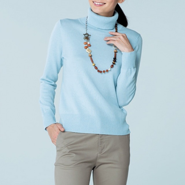 秋一番に備えておきたい、コーディネート映えする優しい色合いの薄手のタートルネック。