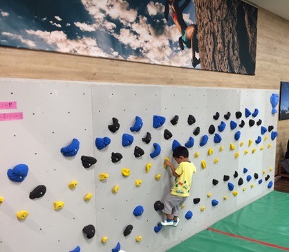 さらに店内には「ボルダリングコーナー」を導入し、お子さまから社会人の方まで、話題のスポーツ「ボルダリング」を手軽にお楽しみいただけます。ボルダリングコーナーでは、2歳から小学3年生までが利用できる、お子さま専用の「キッズウォール」も併設しています。お客さまが安全・安心にご利用いただけるよう、専任スタッフが常駐し、遊び方のレクチャーをいたします。