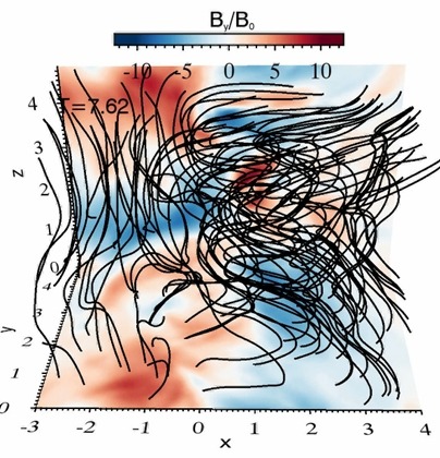 研究グループはスーパーコンピュータ「京」が有する計算能力の約10%(73,728計算コア、100テラバイト物理メモリ)を駆使してプラズマの第一原理計算を行い、強い天体衝撃波の3次元構造を世界で初めて明らかにしました。ペタバイトに上る膨大なデータを解析することにより、冷たいプラズマ(本研究では電子)が相対論的なエネルギー(ほぼ光速で運動するエネルギー)まで加速する様子を示すことに成功し