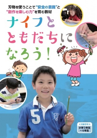 ↑ワークショップや学校での授業にて使用する、副教材「ナイフとともだちになろう!」も作成・配布。東京都中央区立京橋築地小学校では、この教材を用いて授業を行いました。