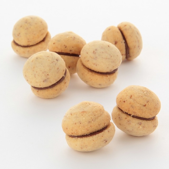 ホロッとした食感のアーモンド入りの生地で、チョコレートをサンドしました。