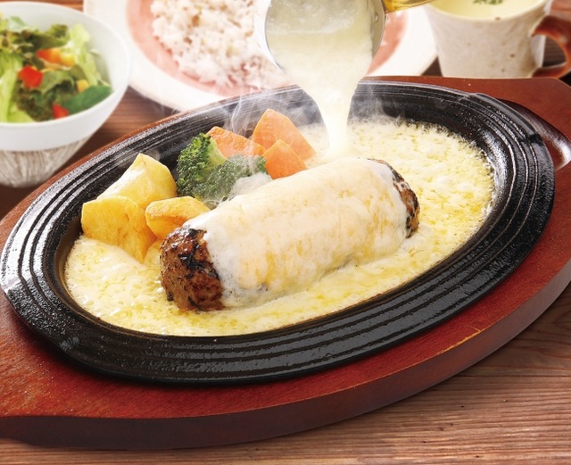 中でも人気を集めているフォトジェニックな装いが自慢の『炭焼き手ごねハンバーグ 濃厚チーズフォンデュ』は、『おむらいす亭』でしか体験できないオリジナル。おむらいす630 円~、ハンバーグ1280 円~。おひとり様は勿論の事、気軽にママ会や女子会、カップルや気の合う仲間たちと気ままに食卓を囲む。