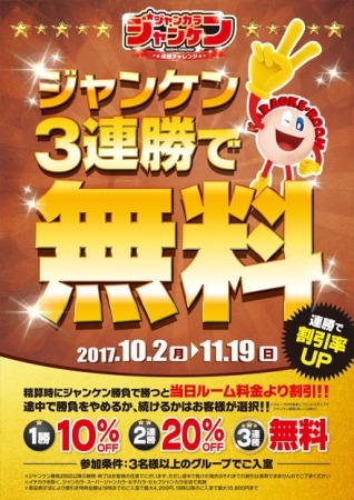 ●特典:ジャンケン1勝…当日ルーム料金10%OFF