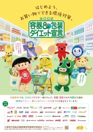「容器包装ダイエット宣言」は、企業と消費者が一緒になって、容器・包装ごみの減量化を進め、地球に優しい、暮らしに優しい社会をつくる宣言です。容器包装ダイエット商品(容器包装の減量化に配慮した商品)や、事業者の取り組みを紹介するリーフレットやポスターを、小売店舗の店頭等で配布・掲示し、PRします。