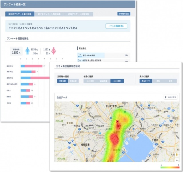 ターゲットとする高校生の属性を、エリア等さまざまな切り口から把握し、分析を行うことが可能