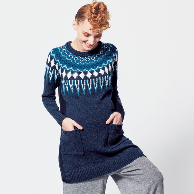 ポップかつダイナミックなノルディック柄が顔周りにデザインされているので、顔が明るく見え、小顔効果も期待できます。
