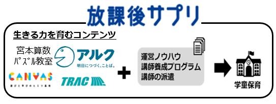 『放課後サプリ』は、子どもたちが大人に成長した時に必要なスキルが身につく高品質なプログラムを、運営ノウハウと共にRMPがパッケージで提供するサービスとなります。子どもたちが楽しみながら、“思考力”や“学びに向かう力”等の生きる力を育むプログラムを、各コンテンツ提供企業と連携して研修マニュアルを作成し、導入しやすいようにしています。また、必要に応じて講師の派遣も行います。