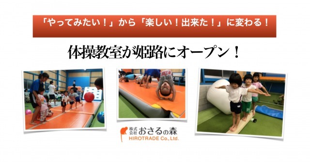 2017年10月1日(日)から姫路市にオープンした “株式会社おさるの森 キッズ体操広場”では、体育指導士と保育士による3歳児、4歳児を対象に行う体操教室を開講します。