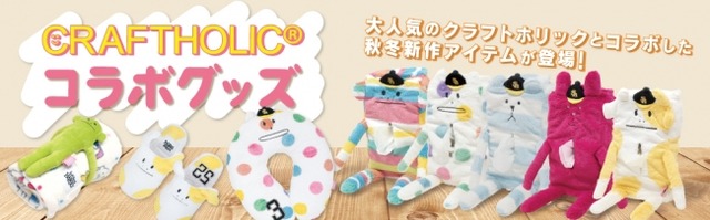 ふわふわの肌触りのブランケットやモコモコでとってもキュートなCRAFTHOLIC×HAWKSコラボグッズが勢ぞろい!この秋冬はCRAFTHOLICたちとあたたかく過ごそう!プレゼントにもオススメです♪