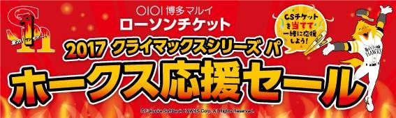 博多マルイ(株式会社丸井、本社:東京都中野区、取締役社長:佐々木 一)は、福岡ソフトバンクホークスのクライマックスシリーズ突破を祈念して、「ローソンチケット 2017クライマックスシリーズ パ ホークス応援セール」を開催いたします。