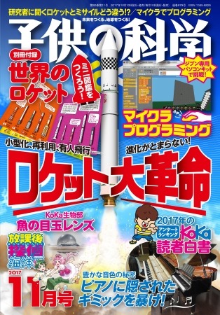 『子供の科学』11月号では他にも「ロケット大革命」、「世界のロケットミニ図鑑付録」、「マイクラプログラミング」、「ピアノに隠されたギミック」など充実の内容になっています。