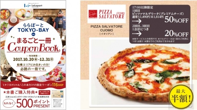 三井不動産商業マネジメント株式会社(所在:東京都中央区 代表取締役 青柳雄久)が運営する三井ショッピングパーク ららぽーとTOKYO-BAYは、2017年10月20日(金)より、ららぽーとTOKYO-BAY内の116店舗で使用できる「まるごと一冊CouponBook」(980円/税込)を、船橋市周辺の書店やコンビニエンスストアで発売します。館内のくまざわ書店、ヴィレッジヴァンガードでも販売いたしますので、ぜひお立ち寄りの際にお買い求めください。