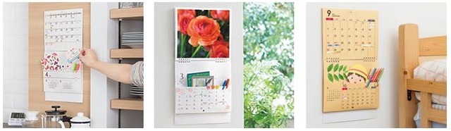 「メモルダー」はポケットが付いているカレンダーで、カレンダーとしての用途だけでなく、メモやプリント類の収納等、実用的な機能も兼ね備えたロングセラー商品です。今年は、シンプルなデザインが幅広いお客様から人気のスタンダードタイプをはじめ、四季折々の花の写真が楽しいカレンダーなど計5種類が登場。また、壁掛けタイプと卓上タイプの2種類をご用意しています。2018年度版では、人気の高い「実用メモルダー」と「卓上メモルダー」のデザインを改良し、さらに見やすく使いやすくなりました。