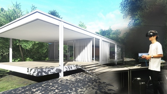 積木製作のリアルタイムVRであってもフォトリアルな映像表現を追求するという姿勢から開発された建築VR製品「VROX ARCHI TOURS」の主力コンテンツ「ファンズワース邸」を使用。
