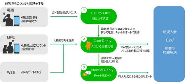 ● 従来の電話・WEBに、『Auto Reply (AIによる自動応答)』(24時間365日対応)、『Manual Reply