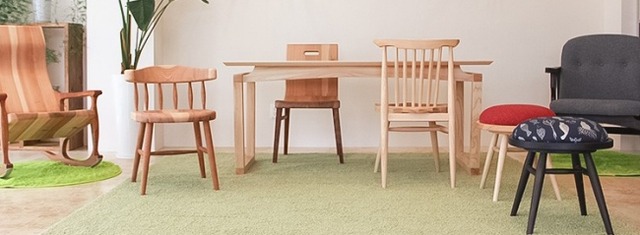 銘木紀州材で有名な和歌山県から龍神杉にこだわる「G.WORKS」。岡山県西粟倉村に工房を置き、檜の家具への想いと技術力で活躍する「ようび」。北の大地 北海道からは中川町で育ったクルミ材を専門に扱う「工房宮地」、中川町の森で木を選び創る旅の提案をしています。また北海道家具ブランドとして旭川は数多くの家具職人が活躍していますが、その中でも技術力を誇る若手家具職人チーム「gauzy calm works」。